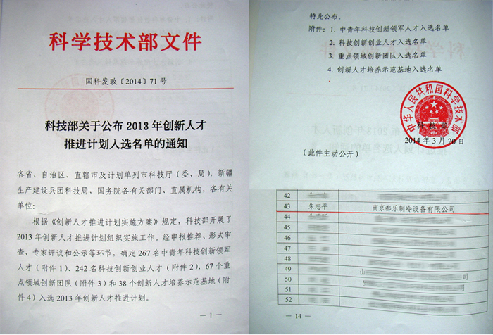 3月20日,國(guó)家科學(xué)技術(shù)部頒發(fā)“國(guó)科發(fā)政[2014]71號(hào)”《科技部關(guān)于公布2013年創(chuàng)新人才推進(jìn)計(jì)劃入選名單的通知》,公布了2013年國(guó)家創(chuàng)新人才推進(jìn)計(jì)劃入選名單,其中科技創(chuàng)新創(chuàng)業(yè)人才242名。我公司總經(jīng)理朱志平博士入選。